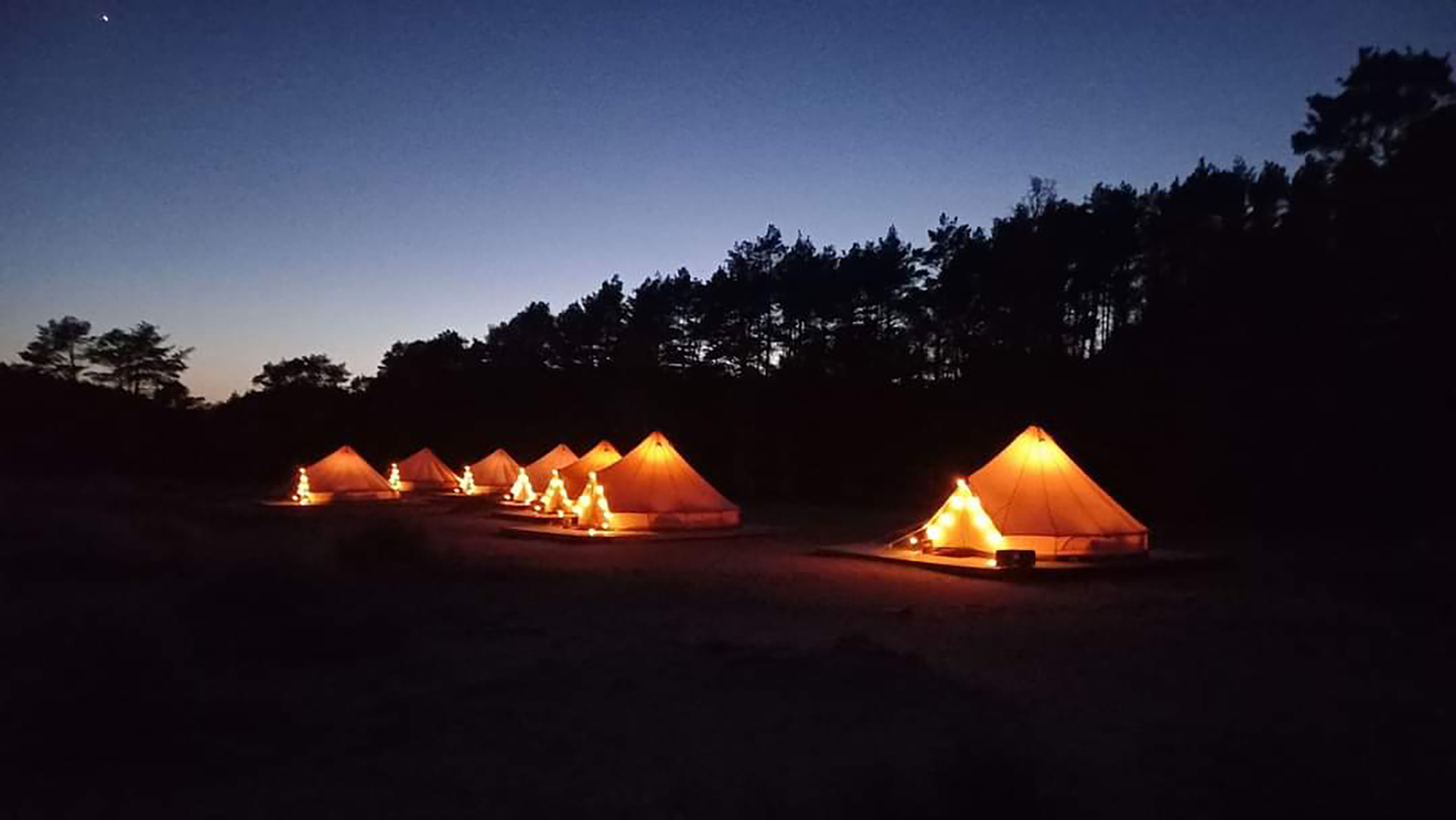 Utleie av teltplass var starten på Lomsesanden camping, en historie som strekker seg til før-krigstiden. Dette er en tradisjon som vi ønsker å ta med oss videre. For deg som ønsker litt mer komfort når du skal ligge i telt tilbyr vi flotte glampingtelt. Du har likevel gleden og følelsen av å ligge ute tett på elementene og de vakre omgivelsene her ute, men har en god seng og alt du trenger av komfort inne i teltet. Glampingteltene våre ligger plassert i sanddynelandskapet foran ved stranden og alle har bålplass foran mot stranden hvor du kan nyte solnedgangen.